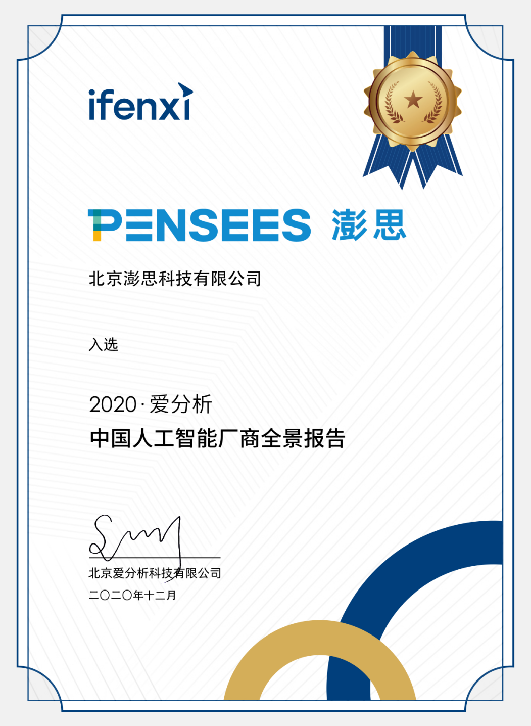 近日,2020爱分析·中国人工智能高峰论坛在北京举办。论坛重磅发布了《2020中国人工智能厂商全景报告》,澎思科技凭借创新的AI技术和扎实的商业化落地能力,在智慧园区、城市安全、智慧交通、智能生产四大应用场景中,被评为具备成熟解决方案和落地能力的人工智能代表厂商。