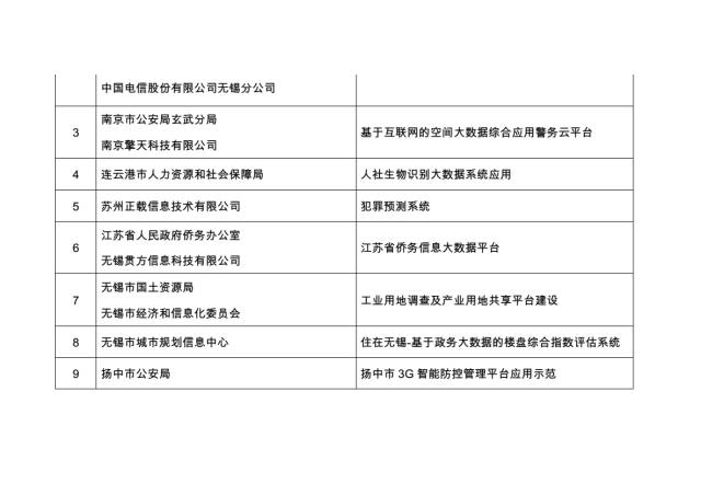 | 1 | 江苏省人民政府侨务办公室 无锡贯方信息科技有限公司 | 江苏省侨务信息大数据平台 |